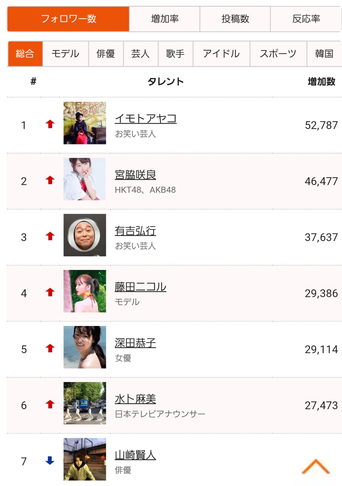 Instagramフォロワー数ランキング