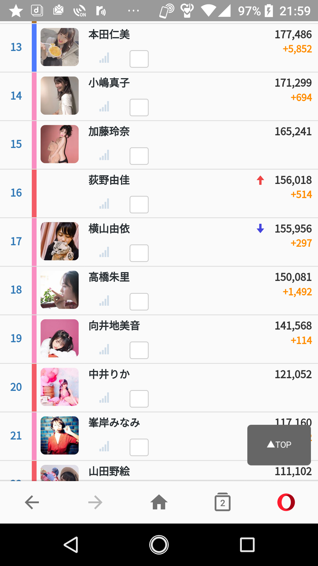 矢吹奈子 177,028 前日比 +1,016