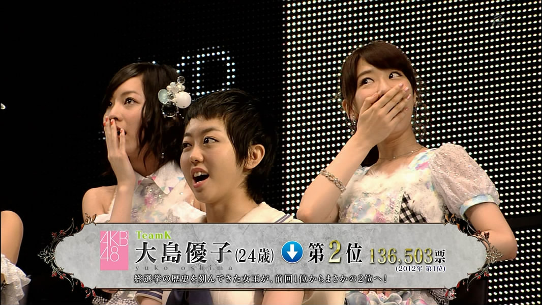 まあ予定調和すぎて面白くはないのかもしれんが、あの時には渡辺麻友が大島優子に勝って一位、翌年に指原が渡辺に勝って一位ってなっていれば色々違っていたのかもしれない。