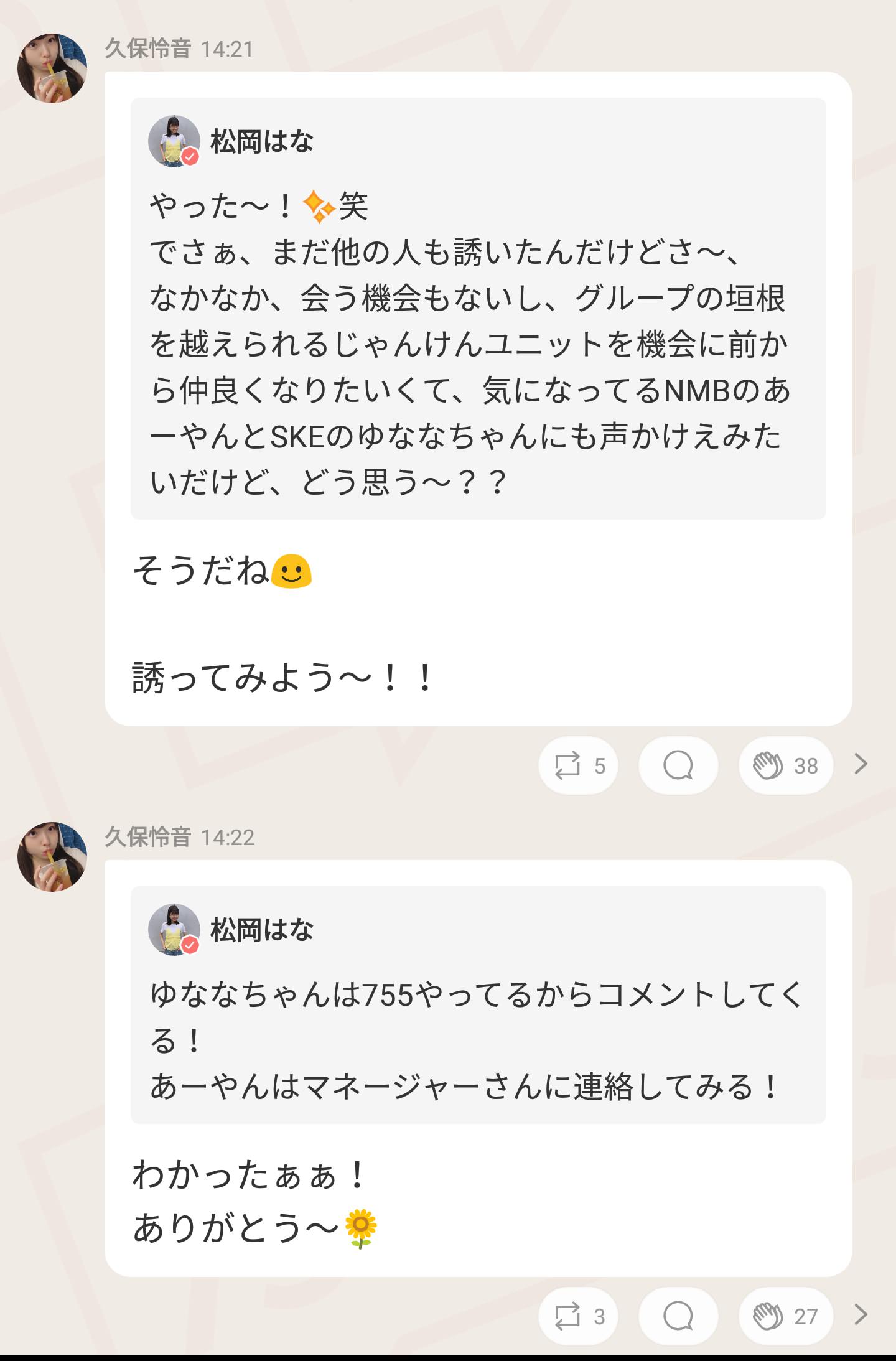 気になってるNMBのあーやんとSKEのゆななちゃんにも声かけえみたいだけど、どう思う~??