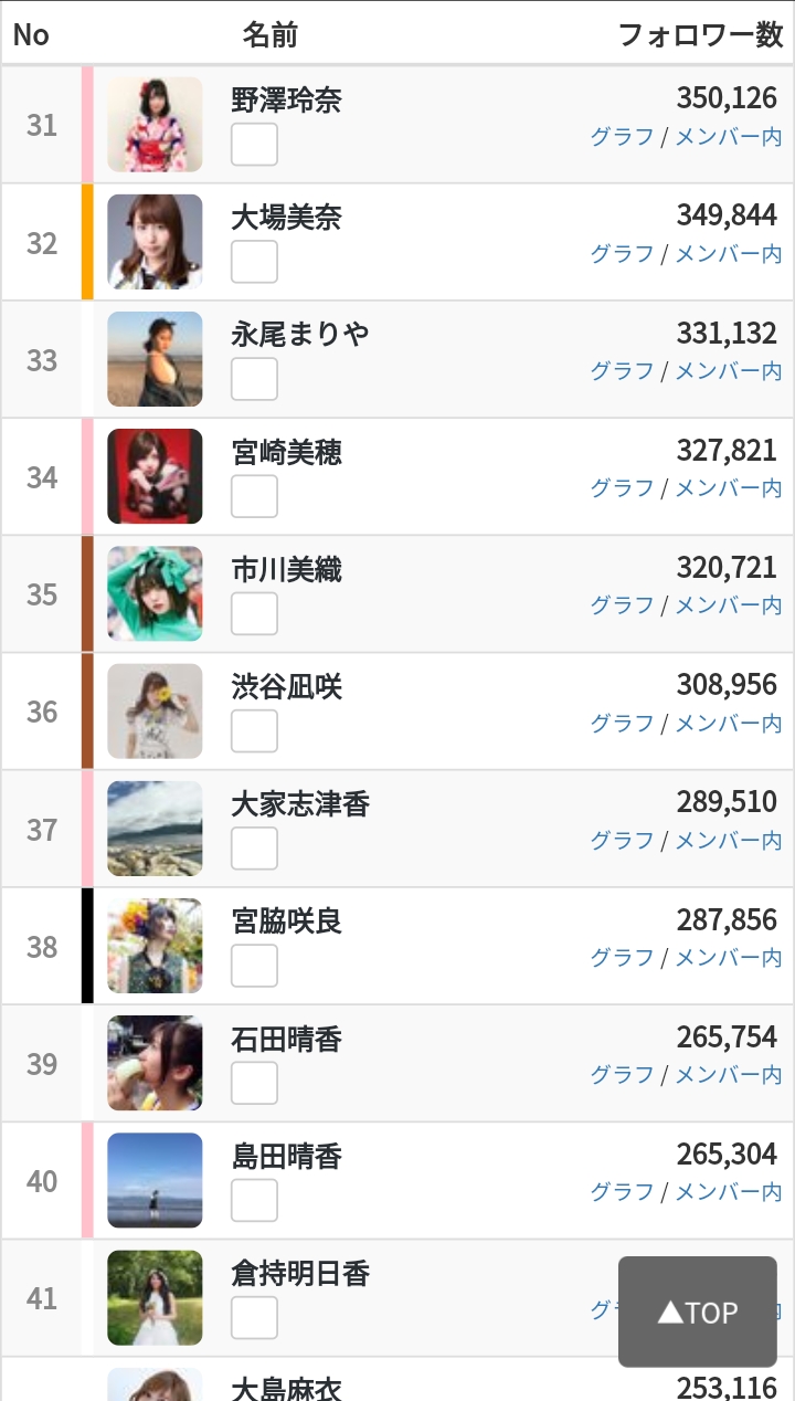 ノザは卒業生含めた48グループ全メンバーの中で31位。ざっと見ただけなので断言出来ないがノザより上位で一度も選抜に選ばれたことのない「非選抜メンバー」は1人もいないな。