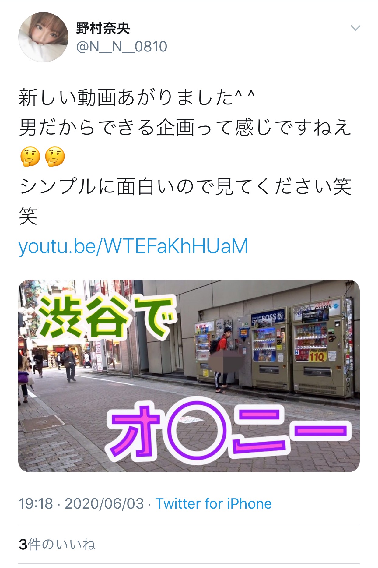 オ○ニーを気持ち悪いと思ってるのに渋谷でオ○ニーしてるヤツと組んでYouTubeやってるのかwwww