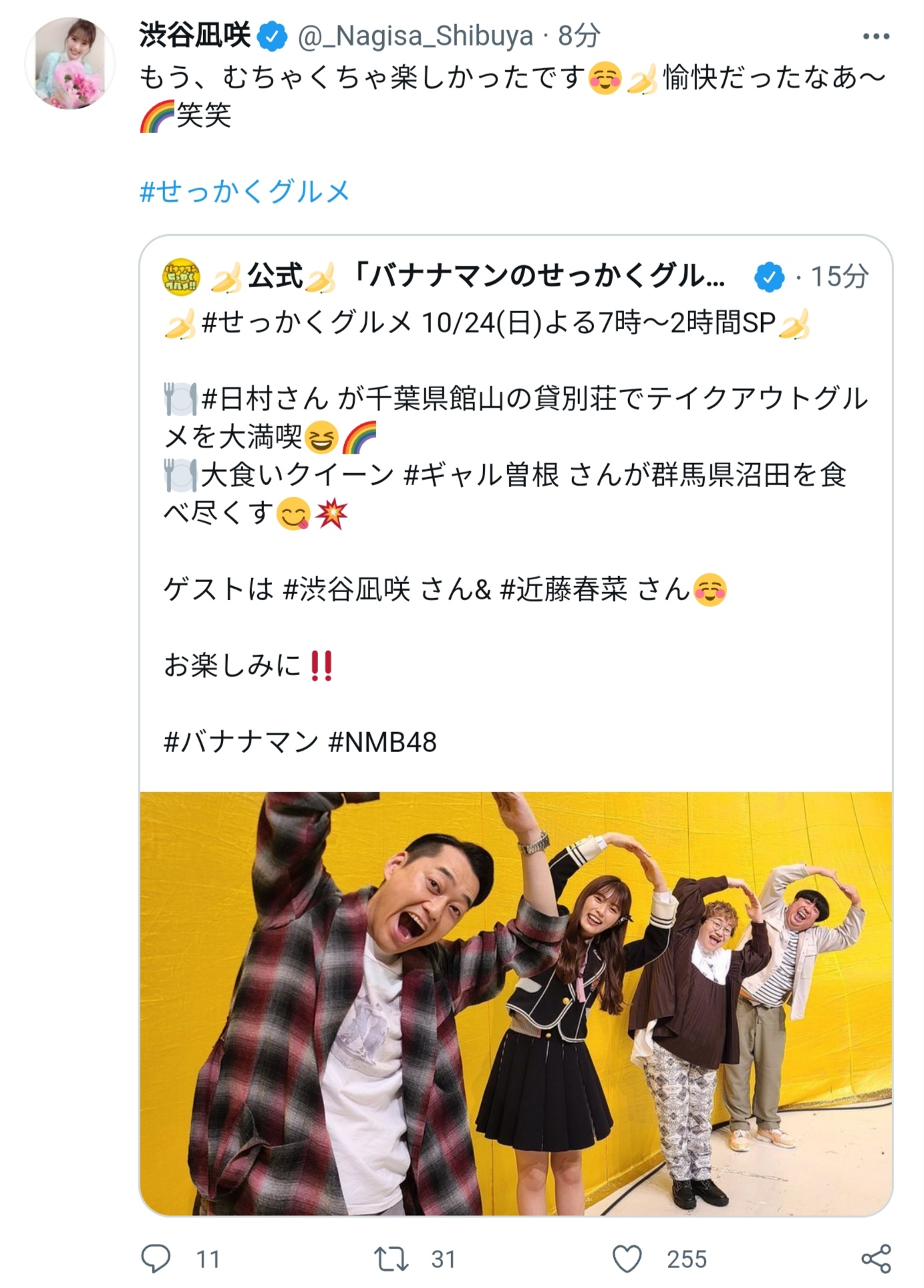 この後クリームやバナナマンの番組と続くな