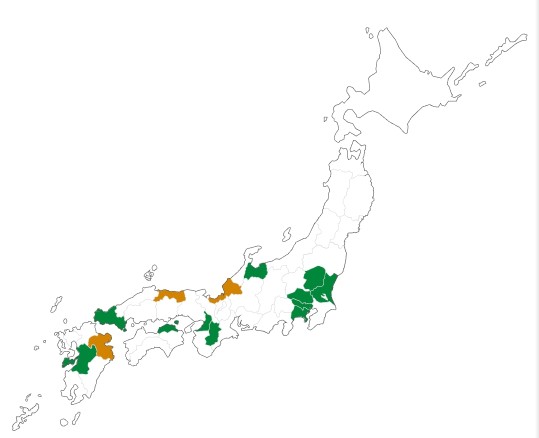 北海道東北 関東 中部 関西 中国四国 九州沖縄