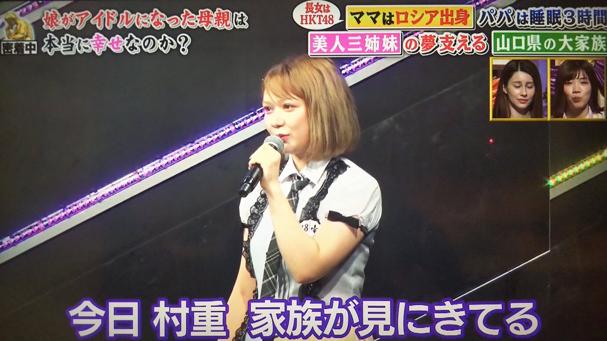 村重: 未姫ちゃんは未姫ちゃんで、すごくいい子なんですけども。村重と未姫ちゃんは方向性が違うし、HKT48は、びっくりするくらい悪いネタを言うことがマジでないから...。仲いいじゃん?