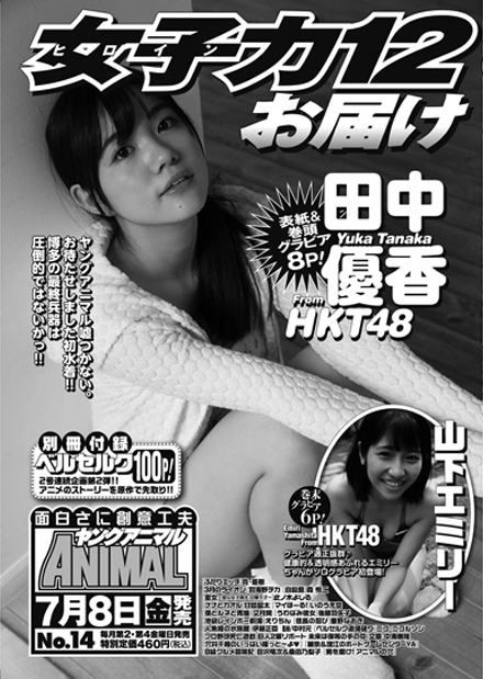 「博多の最終兵器」と呼ばれるHKT48の田中優香(たなか・ゆうか=15)が、発売中の「ヤングアニマル」(白泉社)で初のソログラビアを解禁した。