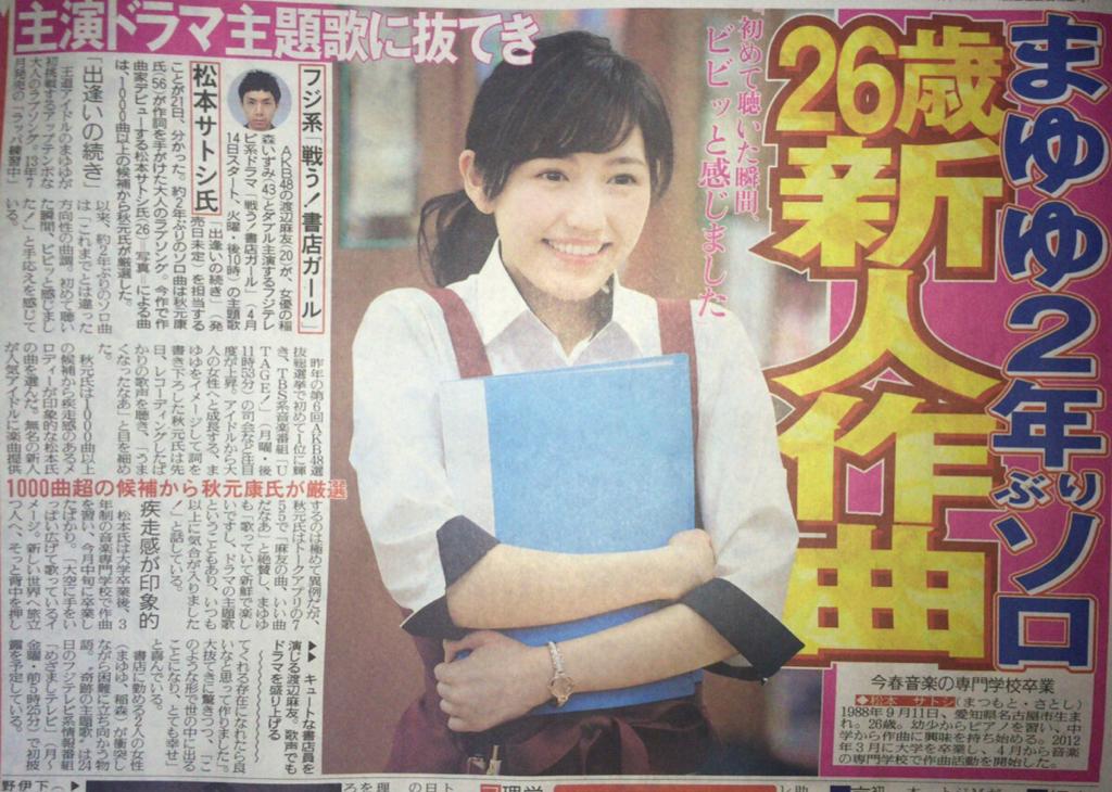 232015/3 【AKB48】まゆゆ2年ぶりソロ曲「出逢いの続き」作曲は26歳専門学校生を抜擢【渡辺麻友】 2015/03/23 10:03 カテゴリ:AKB48 渡辺麻友 4コメント Tweet 1: 47の素敵な(茸)@\(^o^)/ 2015/03/22(日) 04:33:06.39 ID:aplr77dc0.net 書店ガール主題歌だって 【AKB48】まゆゆ2年ぶりソロ曲「出逢いの続き」作曲は26歳専門学校生を抜擢【渡辺麻友】の続きを読む タグ :#AKB48#渡辺麻友#ソロ